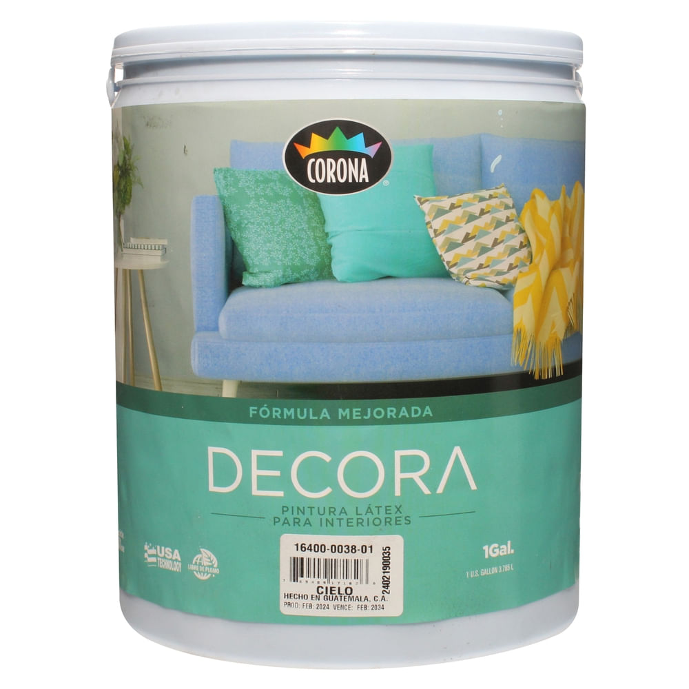 Pintura Latex Decora Formula Mejorada Para Interiores Color Cielo - 1 Galon